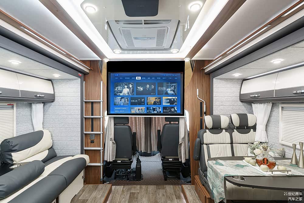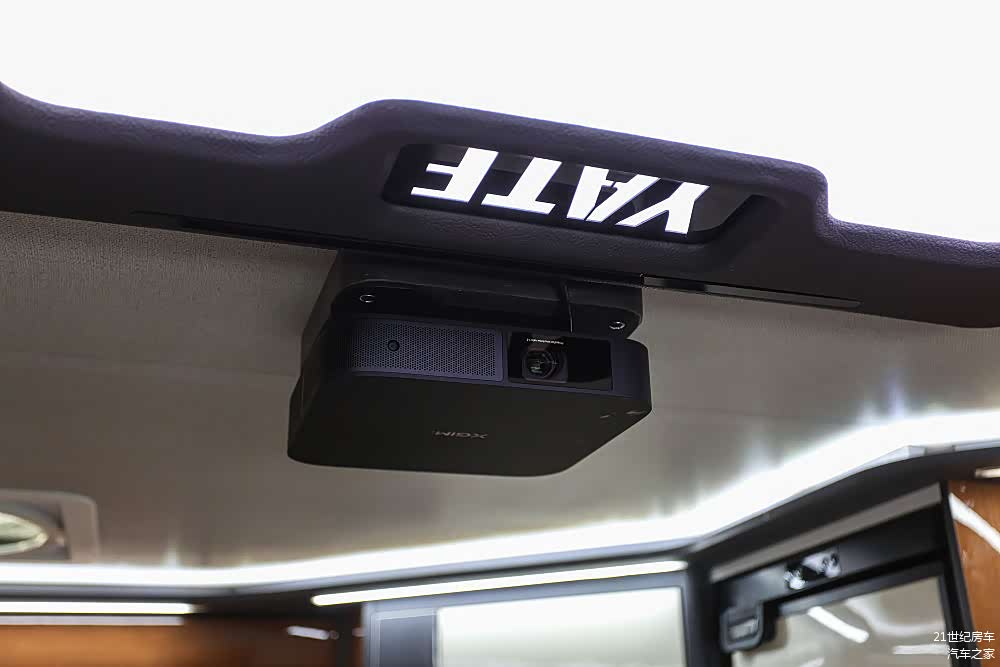 得益于双拓展的宽大空间,车内虽未配备电视但却惊喜的设置了一台极米NEW Z6X投影仪与60寸电动幕布的搭配,让您的房车瞬间变成专属的私人影院。