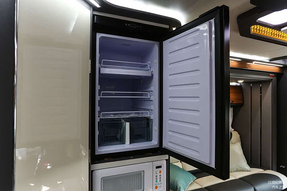 左右拓展分别拓出580mm,可增加2.2㎡的生活空间,车内实际使用面积达到10.3㎡,且此面积是不含驾驶室和额头床的,加上2045mm业内最高的内部箱体高度,使得整体空间呈现出无与伦比的宽大感。