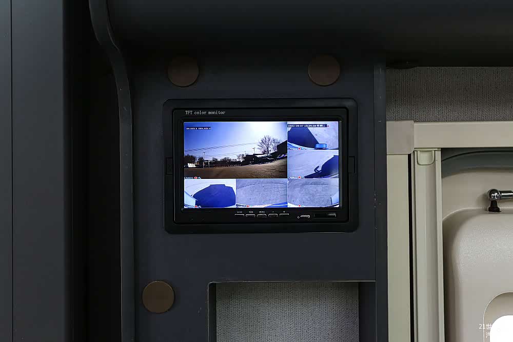 车身四周配有四路监控系统,行车时驾驶员可以实时监控车辆的周围环境,提高行车安全,避免盲区事故;驻车或离车时可以远程查看车内外的视频画面,方便车主随时了解车辆的状态,防止盗窃或损坏。