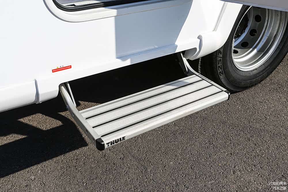 乘客门底电动踏步,随车门联动伸缩、车辆点火自动收回,有效避免因忘收回造成踏步损坏,长期露营驻车时,亦能将踏步锁定。