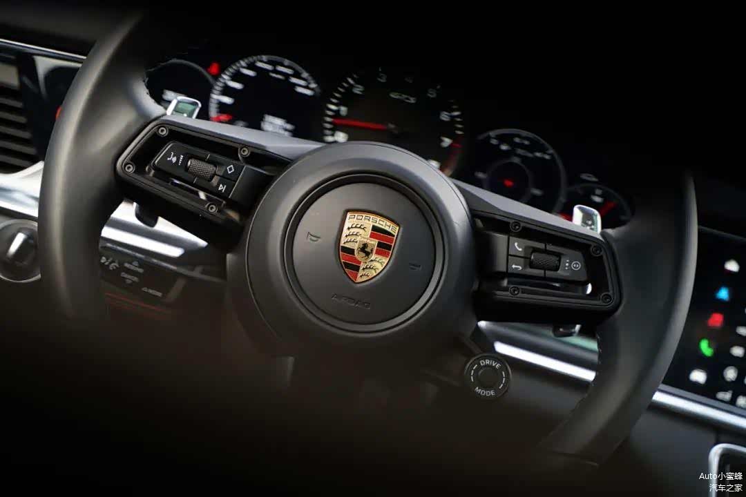保时捷的方向盘相信大家非常熟悉了,整体大小非常适中,握感十足,触摸手感怎一个舒适了得。此外,两侧多功能按键还采用了滚轴式设计,操作更加便捷,下方则配有SC运动组件。
