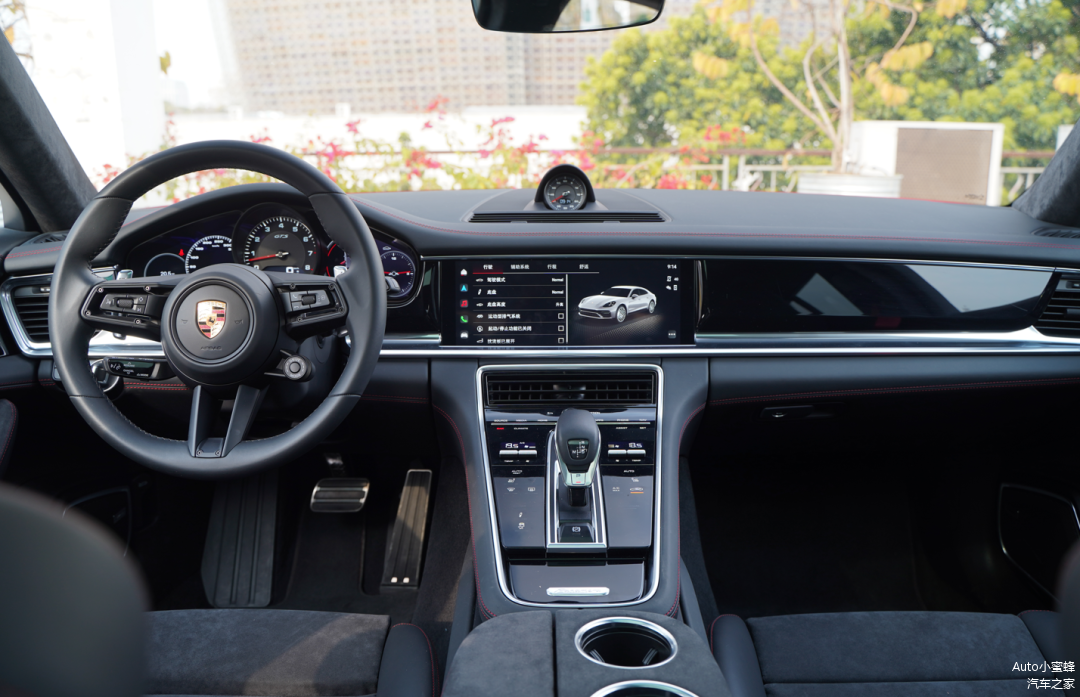座舱设计与普通版Panamera几乎区别不大,同样采用的是保时捷经典的T字形仪表台。