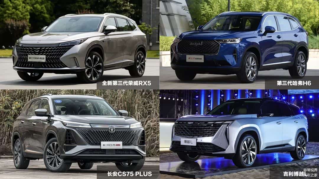 最后是底盘部分,4款车型均采用前麦弗逊+后多连杆独立悬架的结构,但调教才是关键。长安CS75 PLUS底盘质感稍硬,吉利博越L和哈弗H6行驶质感偏舒适,而全新第三代荣威RX5的“德味”较浓。