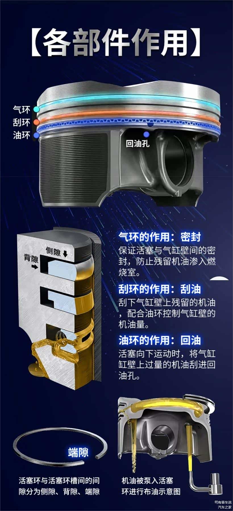 标致的1.8THP的发动机代号EP8和德系的EA888是难兄难弟,都有胎里带的烧机油通病。法系车和德系车的烧机油顽症来自于高温,我们所有的法系车主都知道法系车的发动机属于高转速发动机,1.6T和1.8T的发动机更是做到了和德系低功率2.0T的发动机一样的功率。对于发动机压榨的越厉害,发动机内部工况越差,温度越高。EP8没改款之前的活塞环的回油孔非常小(图片借用论坛车友的照片)。我猜测高温也是法系车对于机油有特殊要求的主要原因,尤其是经常市区走走停停,平均时速低的车,这样的车往往公里数也不多,烧机油来的更早一点。车速慢,不利于散热器散热,得不到有效的撞风速度,不能将发动机的热量迅速带走,更高的发动机温度使得机油温度也更高,在发动机运行时汽油中无法燃烧完全的碳氢化合物、石蜡、胶质便会被烧成胶碳物,机油会逐渐和这些胶碳物形成更硬的结痂物,卡滞活塞环,堵塞回油孔。路况通畅的车和经常跑高速的车反而烧机油来的晚,因为路况足够好,车能跑起来,有效的撞风速度,足以将热量迅速带走,是发动机温度低,而发动机温度低了,机油温度自然就低了。因为机油不光有润滑,还有冷却发动机内部各个机件的作用,这也就是为什么法系车活塞下面会有机油喷嘴的原因,利用机油来给活塞散热。曾见过一辆国六的1.6T的408跑了20万公里不烧机油的,但是国六的发动机据说改进了活塞环,将小孔环换成了波浪环,镂空面积更大了,相比小孔环更不容易堵塞,但是不是说改进了就可以不用担心堵塞回油孔,永远避免烧机油了。当你机油用的不符合要求,汽油品质不好,不及时对油路进行清洁,没有定期使用添加遏制积碳,一样会卡滞油环,堵塞回油孔。