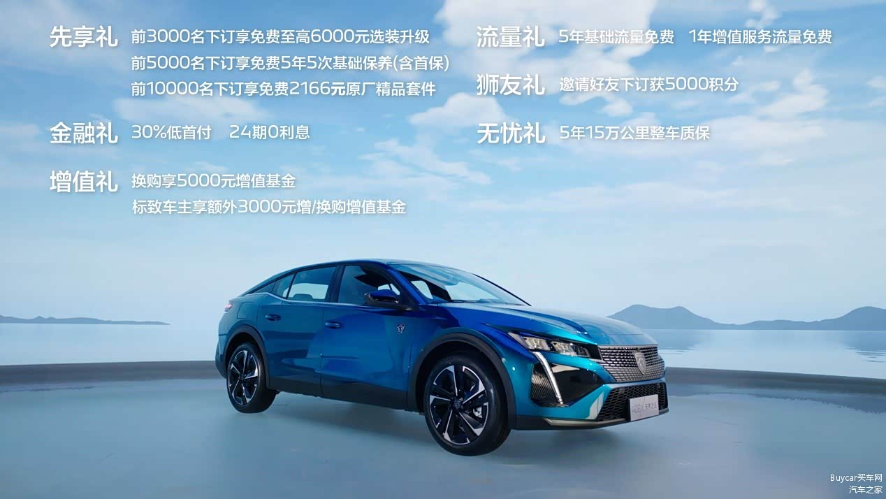 除产品更符合中国消费者需求外,东风标致还推出了多重预售礼。包括限量5年5次基础保养、5年基础流量免费以及5年15万公里整车质保等,助力消费者购车无忧。