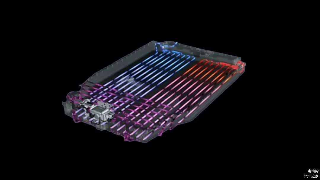 第六,干湿分离集成液态热管理系统:干湿分离,冷却回路集成在电池下壳,电池模组与液冷系统分离,更安全;集成式液冷板,结构支撑与液冷合二为一,有效提升内部空间利用率;智能热管理系统,电池温控系统回路中有PTC加热器和冷却器,根据环境变化智能控温,始终让电池处于最佳状态;