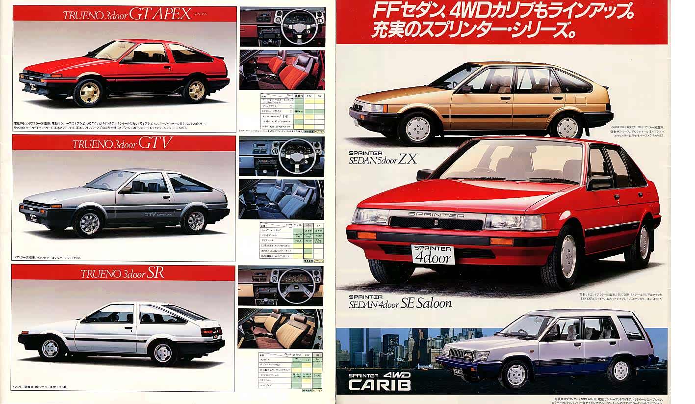 还有高性能的后驱车型Levin和Sprinter Trueno,这两个就继续用四代车型的底盘。