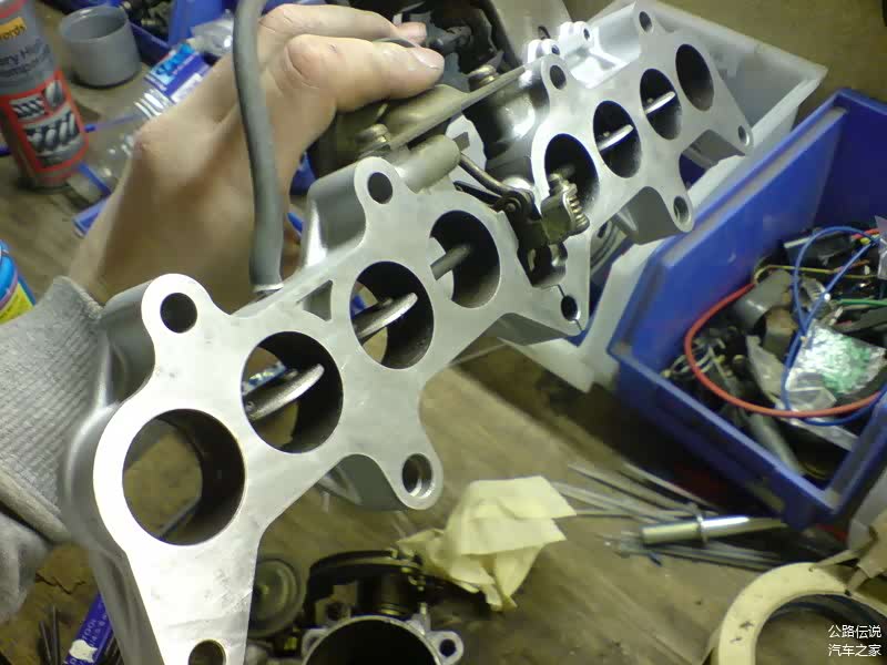 但是高转引擎,中低扭都会偏弱。所以4A-GE就装了T-VIS可变进气系统,在进气歧管里面装了阀门,能随时改变进气管的数量。