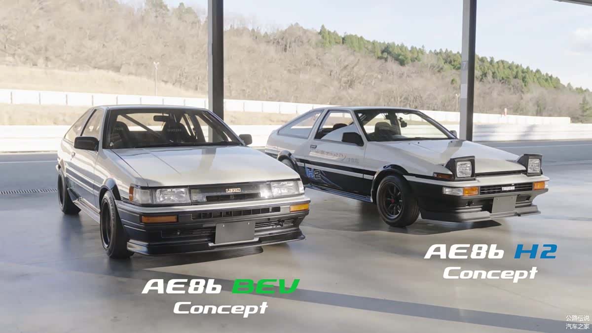 那过了几十年,最近AE86又有新动作。前段时间的东京改装展,丰田GR搞了两台新能源AE86,一台是纯电 AE86 BEV Concept,另一台是氢燃料引擎的AE86 H2 Concept。