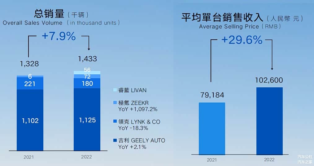 前一段时间,很多人都在问笔者,如何看待和评价吉利过去的一年。个人的观点一直是:如果单看销量和份额,那仅仅是一个不算美好的结果。但143.29万辆的销量和8%的增幅,在艰难的2022年已经相当不错了,更何况去年吉利逐步突破过往三年年销130万辆级的瓶颈,找到了新的道路。