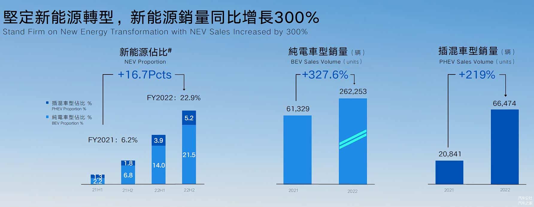 另外新能源增长板块是领克,去年也是领克汽车的新能源转型之年,其新能源车销量占比由 5.5% 上升到 21.7%,主要是插电混动产品和油电混动产品。去年领克已经宣布了将停止推出全新的纯燃油车产品,未来领克品牌的所有全新车型都将是新能源产品。