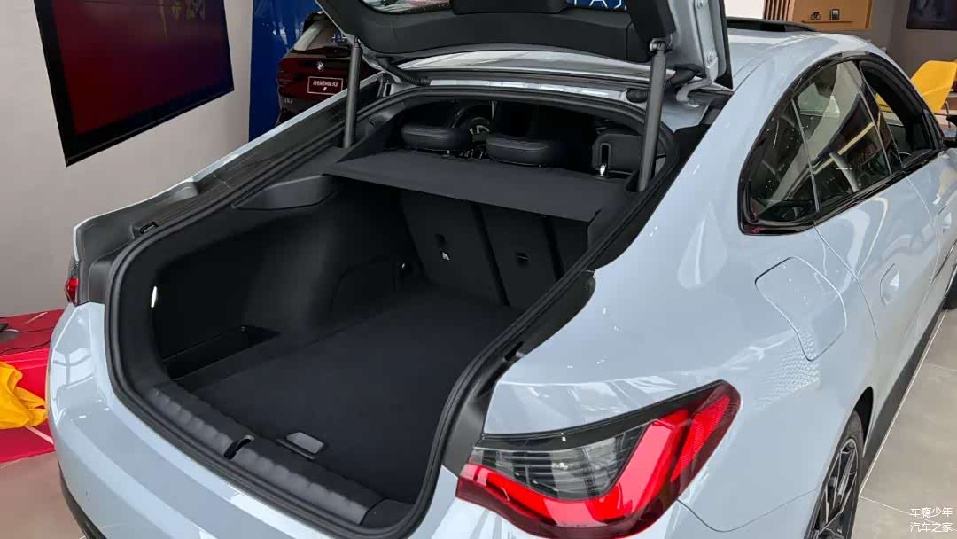 尾部设计和普通4系大体一致,尤其是尾灯造型,虽然没有内燃机不需要排气口,但它依然保留了排气管的造型,只不过换成了扩散器设计。