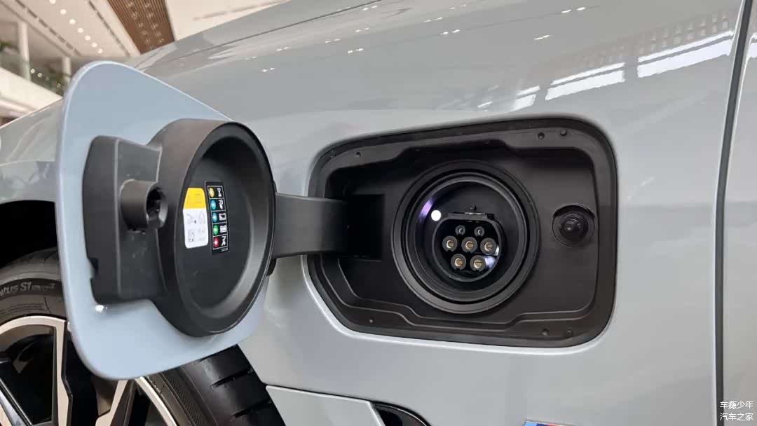左侧前翼子板处的充电口是慢充,快充口在右后方。