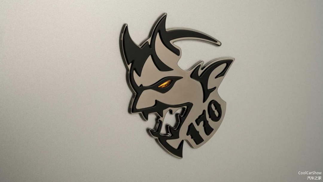 上方引擎盖则为开孔设计,而下方前包围为三段式构造,可以透过进气格栅看到内部的中冷器等散热件。车身上的恶魔徽章也融入了新的元素,其中就包括了黄色的眼睛以及“170”标识。