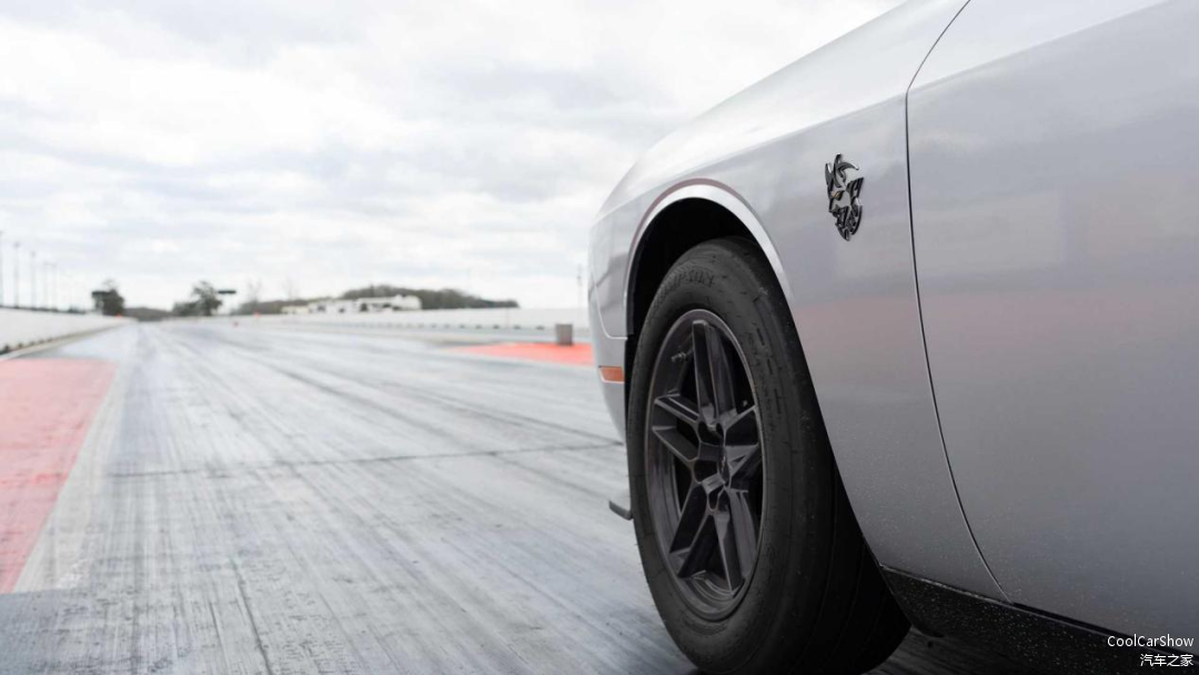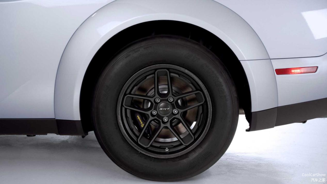 如此强大的引擎动力由传动系统传递到轮胎,继而推动恶魔170。为了避免起步时轮胎打滑,为其定制的Mickey Thompson P 315/50R17 ET Street R轮胎,Mickey Thompson是一家专门打造赛事轮胎的公司。这种轮胎采用了尼龙侧壁,可在巩固胎壁在加速时减少“褶皱效应”的同时,还能改善动力传递并减少轮胎打滑的情况,从而实现更大的动力传递。