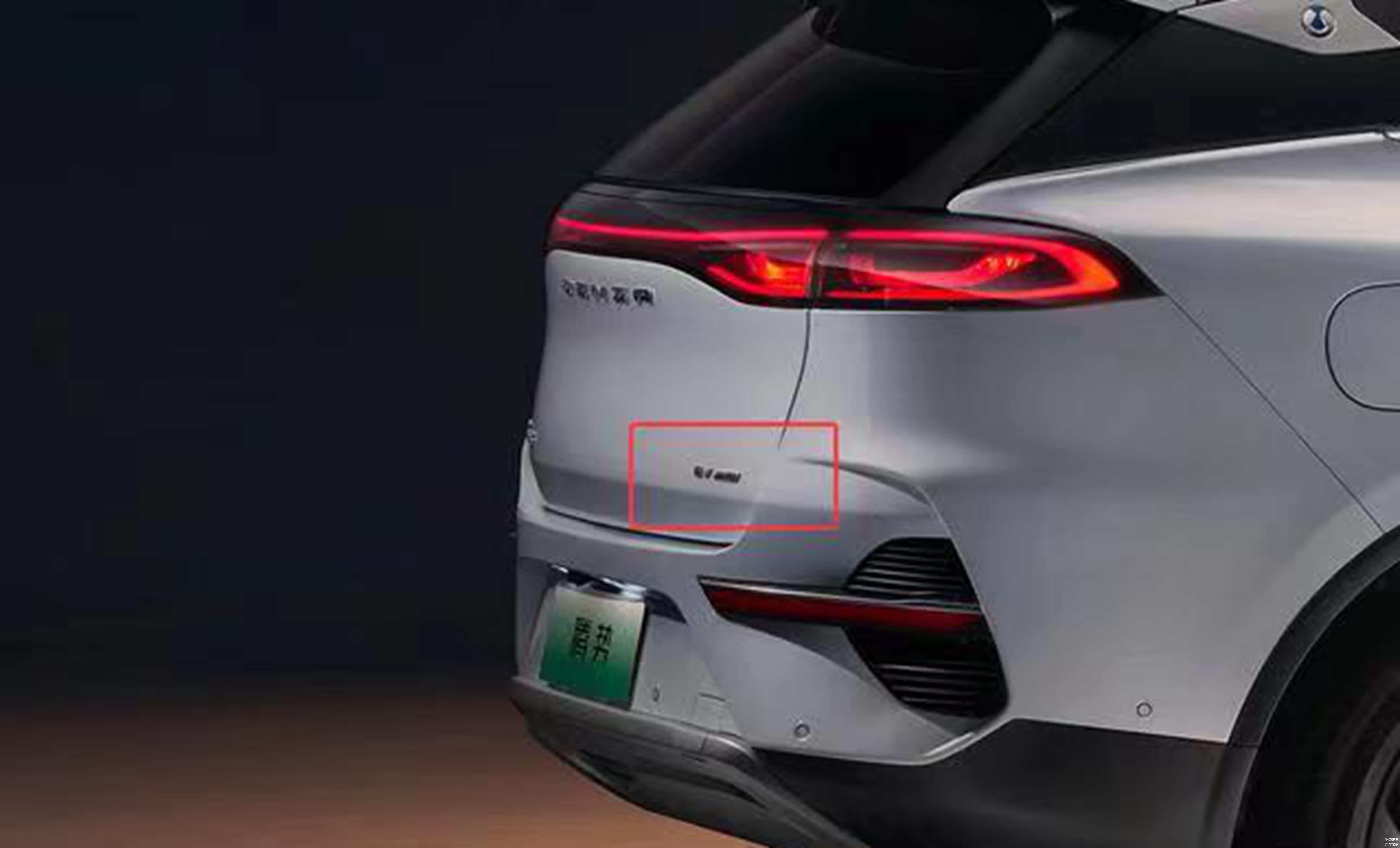 右侧尾灯下方有车型标识,分别是燃油发动机与双电动机构成的DM-p系统,以及前后双电机构成的EV AWD纯电动四驱系统。其中,插电式混动车型(DM-p),配有支持最高90千瓦的直流快充接口。