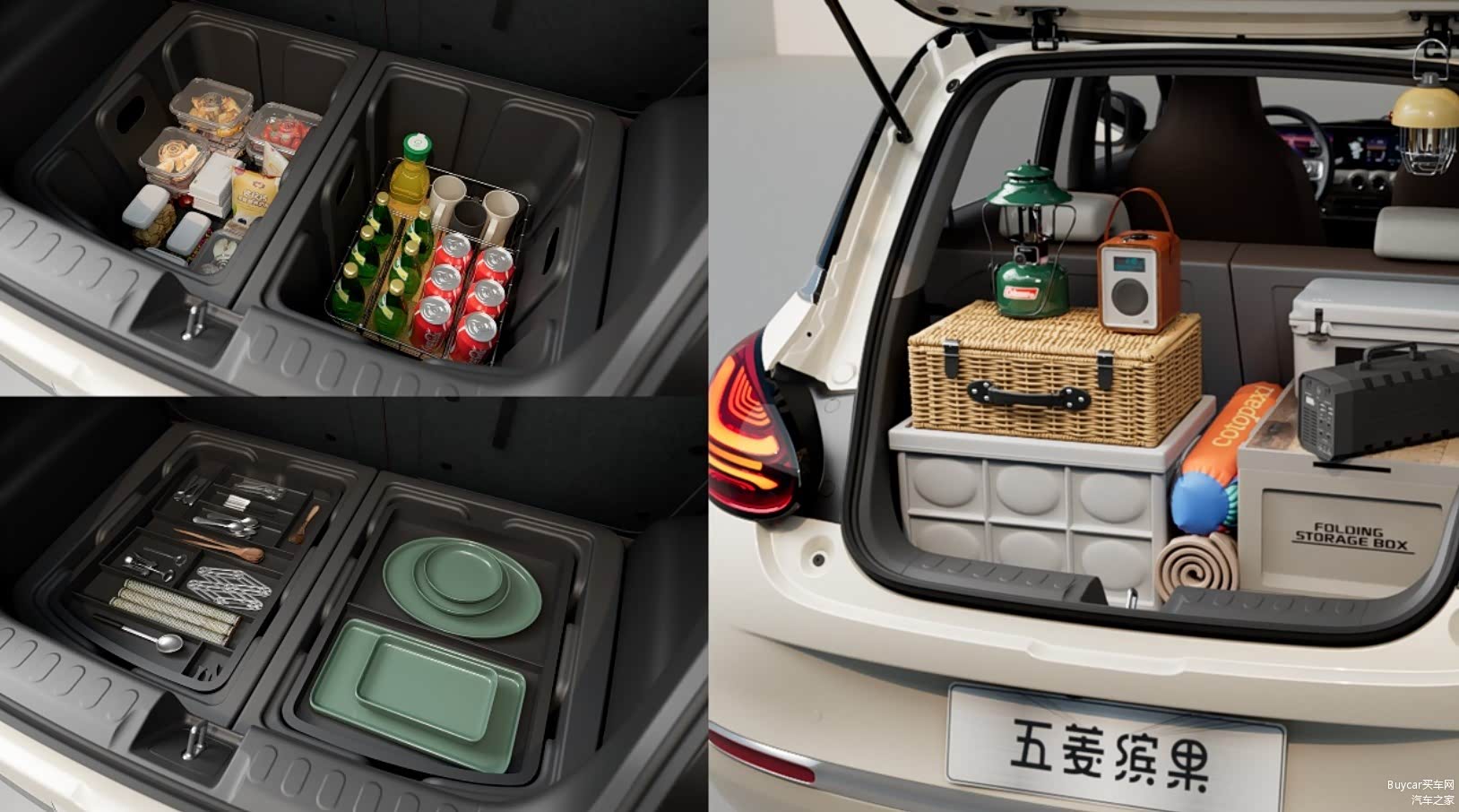 另外,在空间使用方面五菱缤果亦有着不错的表现,2560毫米的轴距数据结合前排贯穿式主副驾设计及对门板、仪表台的挖切,形成了手机槽、杯托、手套箱等15处储物空间,将空间的实用性发挥到极致。并开发出独有的下沉式后备箱,搭配独家设计的储物盒,形成“上下层”大空间布局,容量最大可扩展至790升,满足用户多场景用车需求。