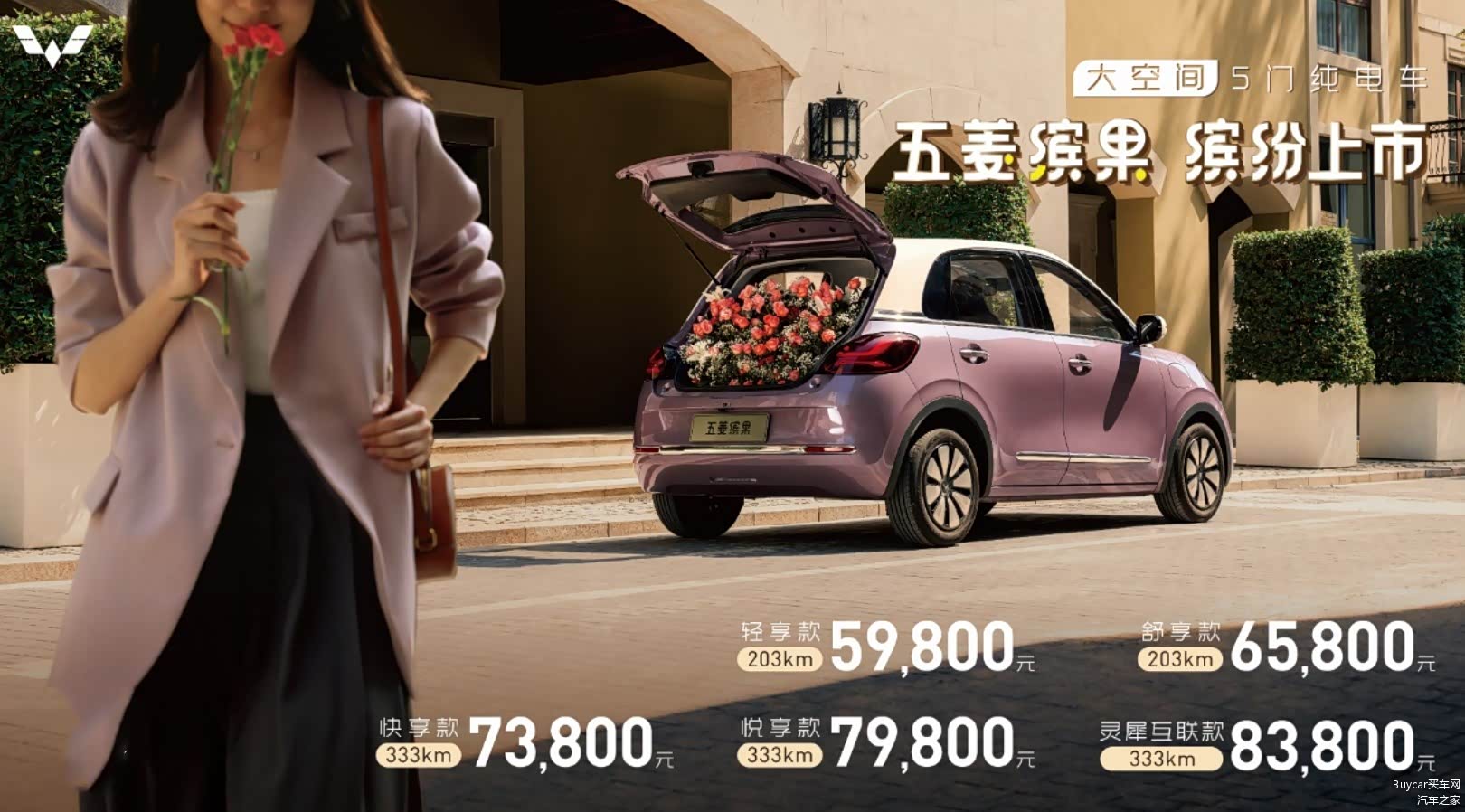 继宏光MINIEV之后,五菱接连推出宏光MINIEV敞篷版、GAMEBOY版本、马卡龙、NanoEV、Air ev晴空等多款车型,而今天其再推出缤果,一款大空间五门纯电车,厂商指导售价为5.98万元-8.38万元。