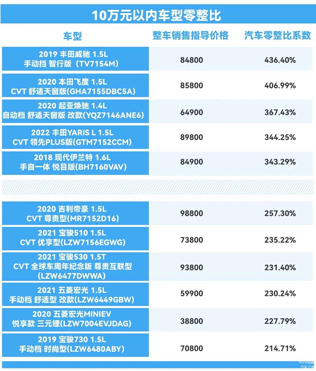 最新一期由中汽研发布的汽车零整比数据已经出炉,如果你担心“买得起但养不起”,不妨关注一下哪些车的零整比系数更低。