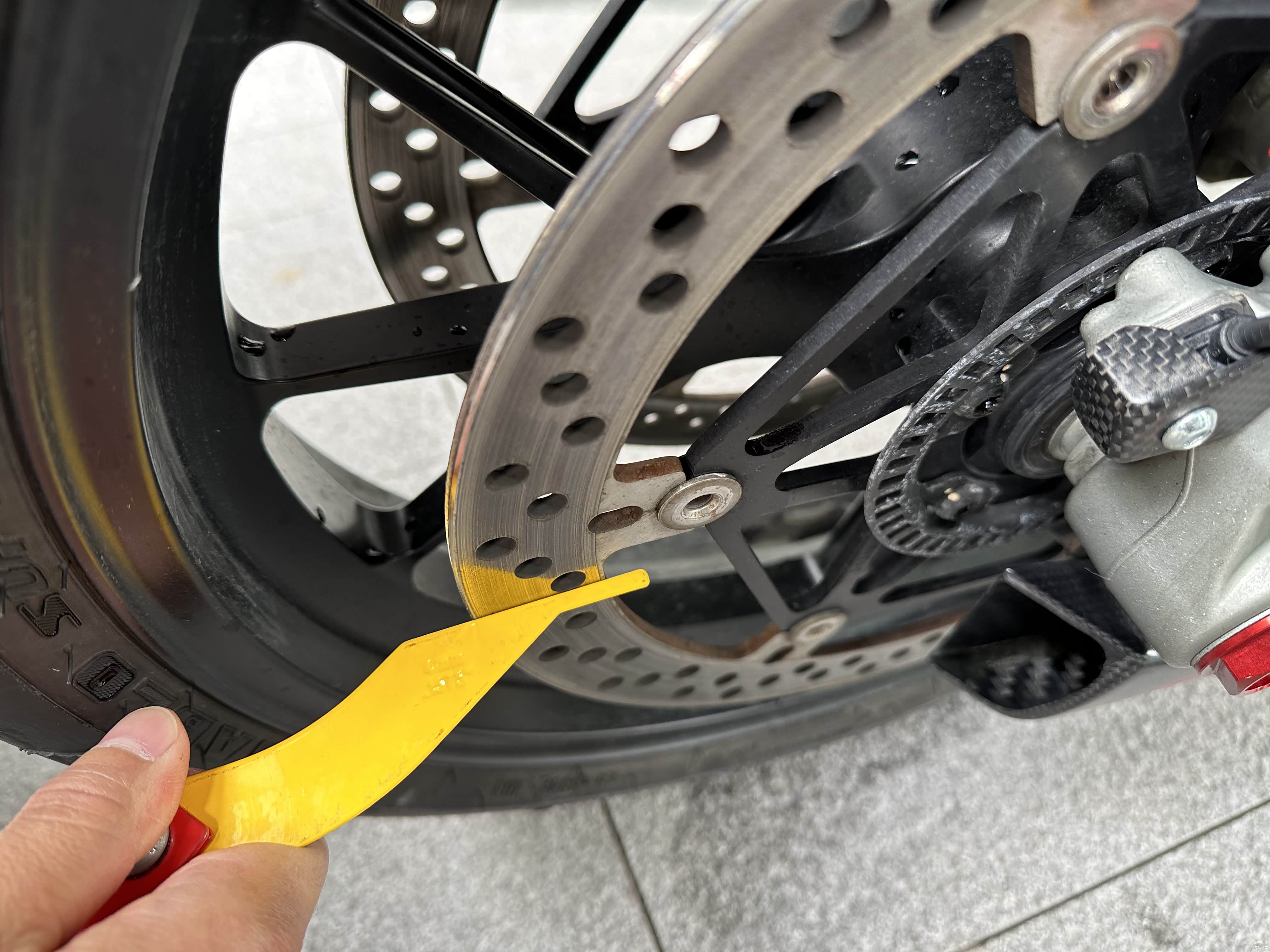 首先检查外壳是否整洁,是否有凹痕或刮痕等。如果看见毛刺或其他粗糙表面,或表面不平直,说明可能存在碰撞或脱落的迹象;其次检查车轮和车轮轴,摩托车车轮应该是对称的,没有扭曲或畸形的现象;接着检查轮胎有没有割痕、裂痕、漏气、磨损严重,胎纹是否均匀,轮胎大小和原厂是否匹配等问题;然后检查车灯是否工作正常,脚踏板和把手是否有磨损或者受损等情况。