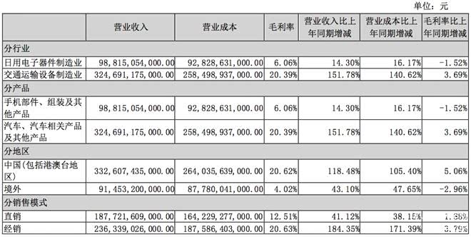 得益于销量的增长,比亚迪汽车、汽车相关产品及其他产品业务的收入也达到3246.91亿元,同比增长151.78%,占总收入的76.57%。