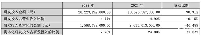 除营收与利润实现大幅增长外,比亚迪在研发方面的投入也增至202.23亿元,同比增长90.31%。自2022年3月停产燃油车以来,其相继推出了CTB 电池车身一体化、DM-p 王者混动、易四方平台等多项技术。
