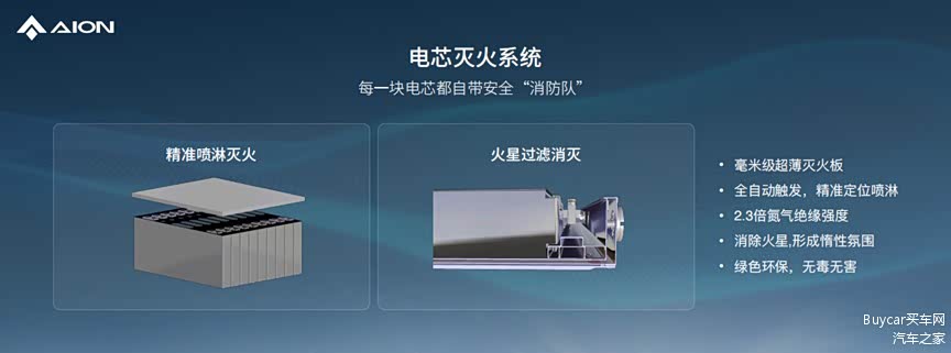 第三,弹匣电池2.0配备了电芯灭火系统,它利用低熔点合金构成了灭火腔,在非常小的高度空间上实现了灭火剂的储存、热失控电芯的自定位和定点喷淋,当电芯发生热失控,大量的灭火剂瞬间精准喷淋到该电芯上。灭火剂可以在吸热气化的同时,捕捉燃烧链式反应的自由基,形成惰性气体氛围,结合埃安的热失控气体排放处理技术,可以消除排气中的火星和99.5%的PM10。这一技术的应用,令弹匣电池2.0成为了唯一自带安全“消防队”的电池技术。
