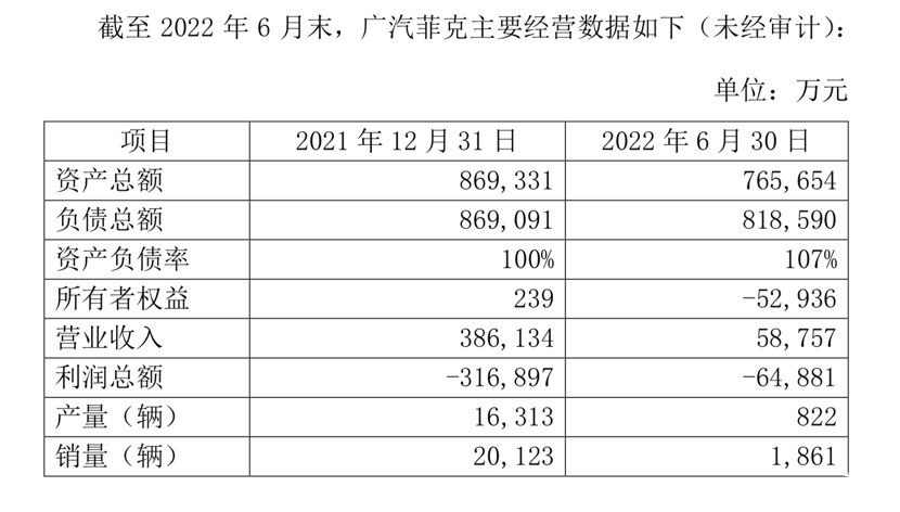 销量的直线下滑直接导致广汽菲克财报变得“难看”。广汽集团财报显示,2017年广汽菲克净资产达到峰值44.22亿元,而在经历持续亏损后,2020年净资产变成了-3.31亿元,三年累计亏损高达近50亿元,一度成为广汽集团最大的“负资产”。另据广汽集团2021年半年报显示,广汽菲克净资产亏损持续扩大至14.38亿元,三年半时间内,广汽菲克累计亏损近60亿元。截至2022年6月30日,广汽菲克资产总额为76.57亿元,负债总额为81.86亿元,资产负债率为107%,简言之广汽菲克已处于严重资不抵债。如今广汽菲克恢复执行信息,再被执行超3088万元,对于广汽菲克而言无疑是雪上加霜。