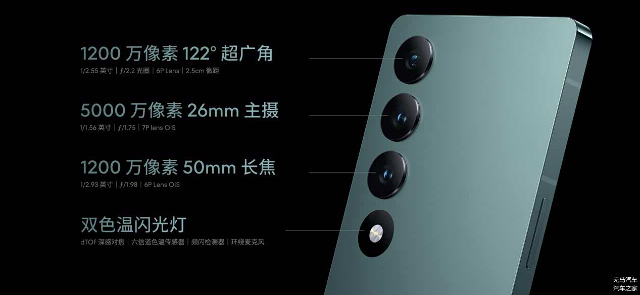 4、采用 5000W 三主摄人文影像系统,后置摄像头首次舍弃边框采用晶穹无界镜组,每个镜头内圈光学镶嵌两片蓝宝石,且有超感 ALD 镀膜技术、双 OIS 光学防抖系统以及dTOF 辅助双维对焦技术等黑科技加持,从而有效避免鬼影问题,并提升对焦速度。