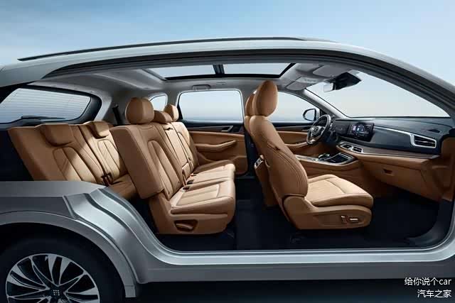 内饰采用环抱式概念设计,以双色皮革包裹,并结合大量的镀铬饰件点缀,呈现出气势磅礡的层次感与高级感。座椅标准5座与7座布局,消费者可根据自身需求选择,并采用人体工学设计,提供舒适的驾驶体验和乘坐氛围。