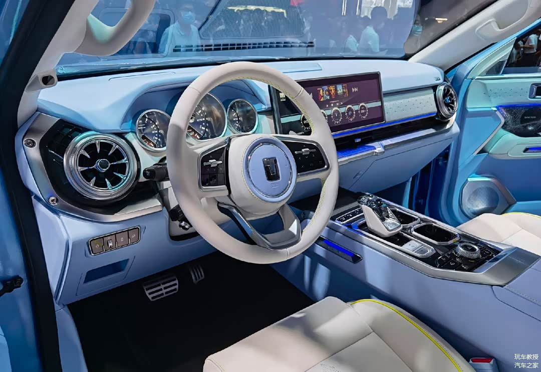 主驾由“三圆”仪表搭配悬浮式中控屏以及三辐式方向盘,且空调出风口采用与坦克300相似的圆筒造型突出新车运动感。