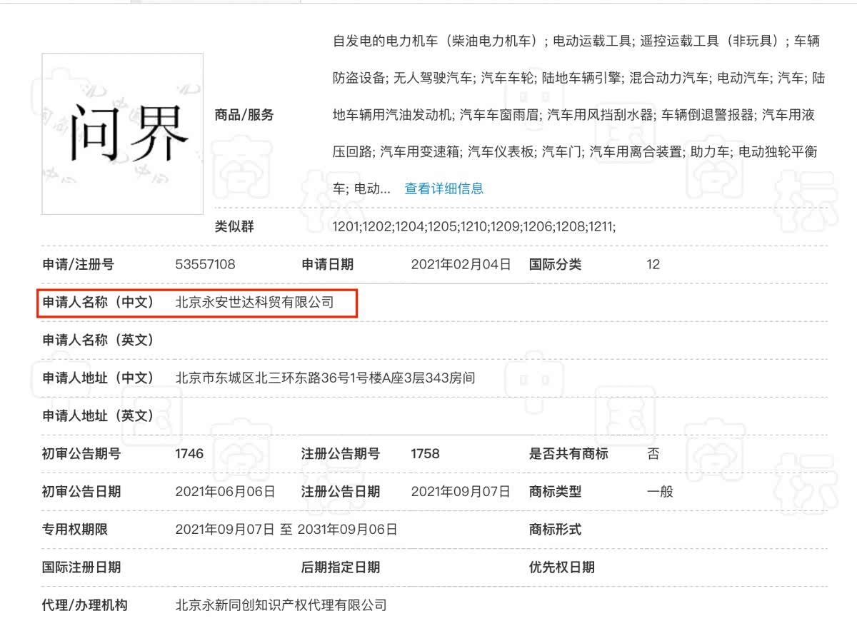 大河报·豫视频记者通过天眼查查询发现,问界的二字商标属于北京永安世达科贸有限公司,该公司与华为相关企业曾有过多次业务往来;而注册和转让AITO商标的正德电子和北京锐德凯卓科贸,也与从华为剥离出来的荣耀公司有过业务往来。