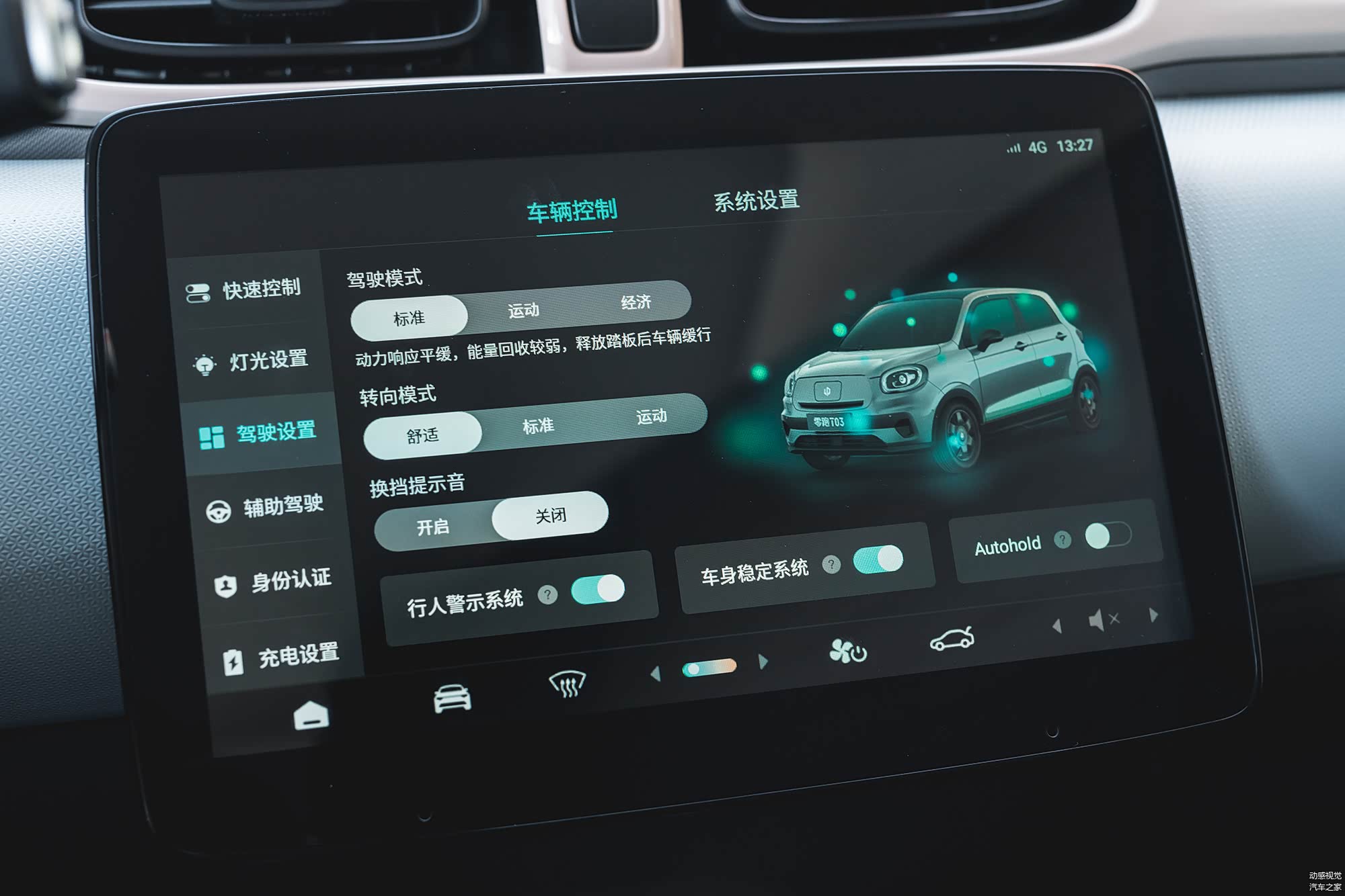 尽管零跑T03的尺寸比奇瑞小蚂蚁更大,驾驶感觉却更加轻松,整体表现非常轻快,而且零跑T03能够提供经济、标准和运动三种驾驶模式,它的动能回收力度与驾驶模式相对应,经济模式下最强,比较适合在早晚高峰时使用;标准模式下,它回收比较线性柔和;运动模式下则弱得几乎接近于燃油车的体验。不同的驾驶模式能够适应各种应用场景,相比之下,奇瑞小蚂蚁只有两种驾驶模式可选,驾驶质感相比于零跑T03也有一定的差距。