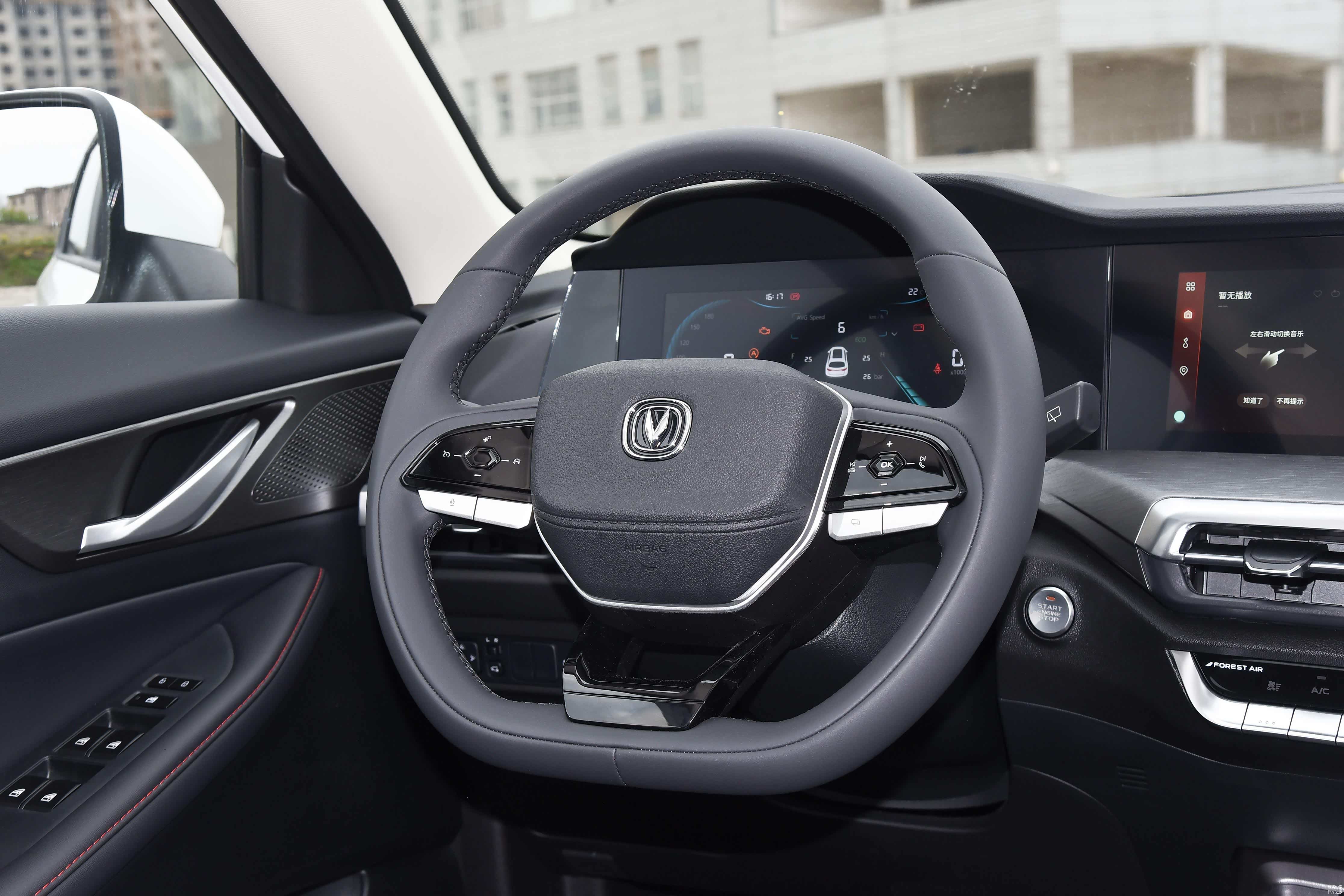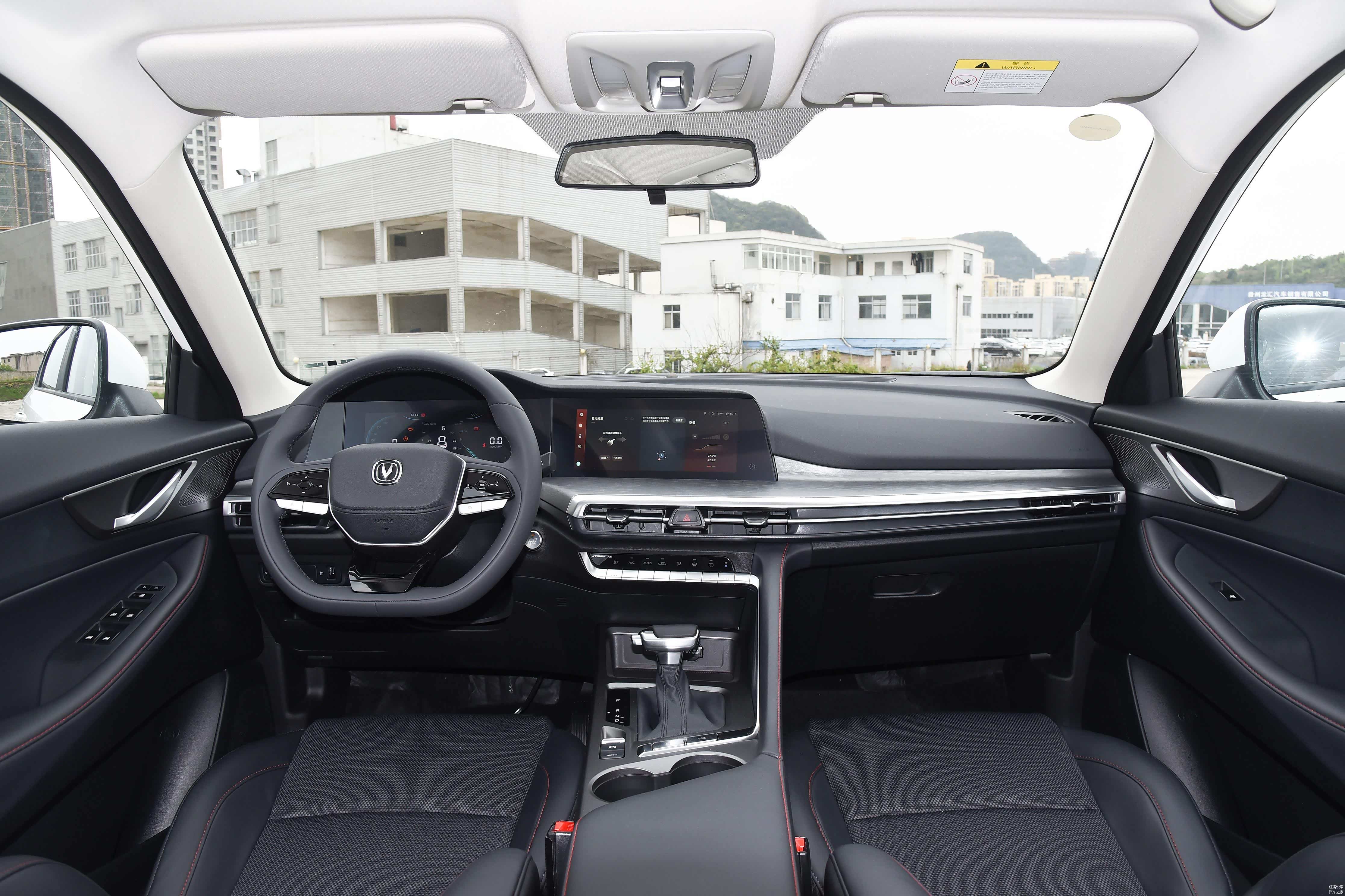 内饰方面还是我们熟悉的设计,有全黑以及黑红配色,中控台微微偏向驾驶者一侧,中间部分应用了银色金属装饰,10.25英寸液晶仪表和10.25英寸中控屏组成了大屏,而多功能方向盘中间部分样式稍有改变,应用了黑色烤漆材质。