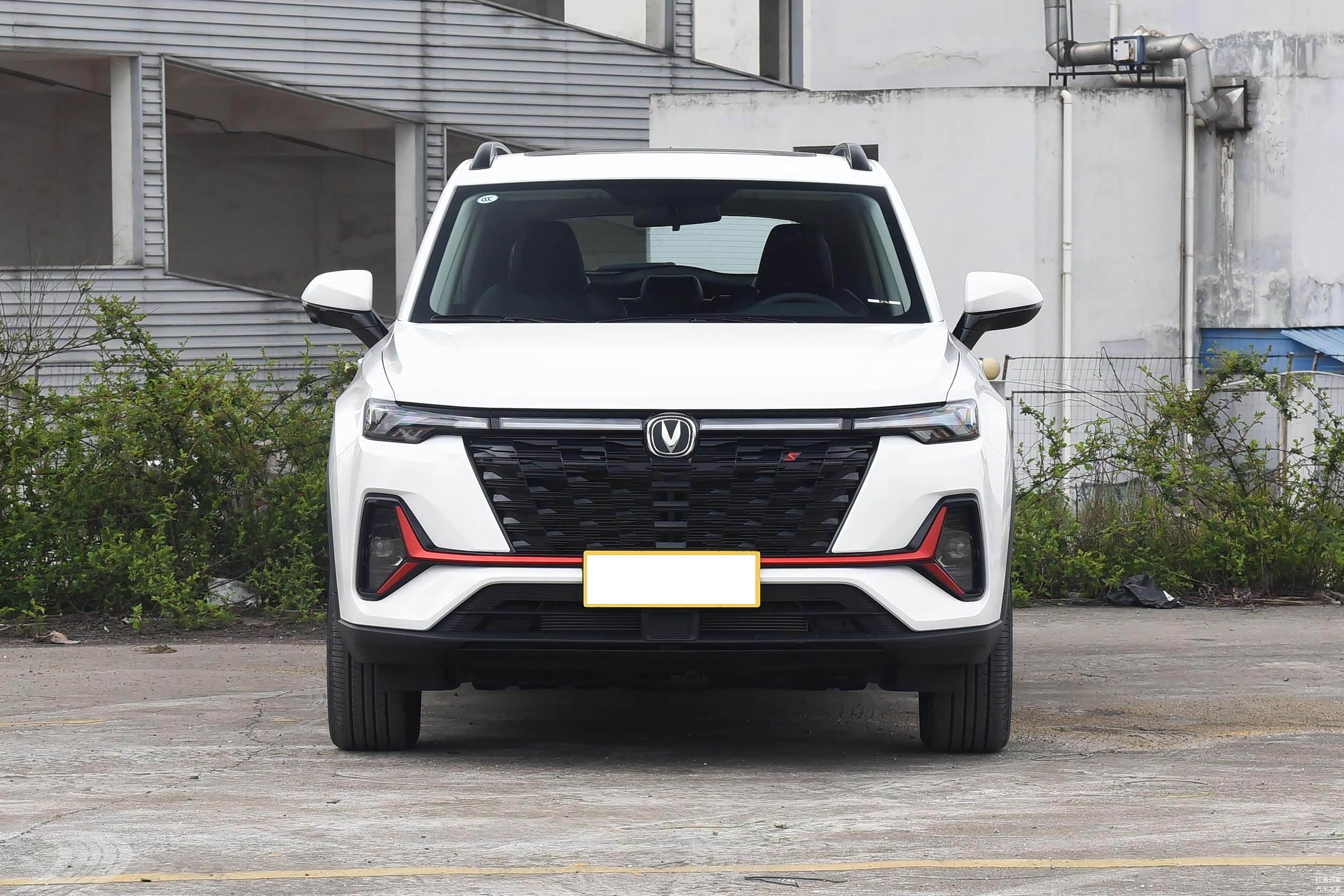 2023款长安CS35 PLUS畅享版的外观方面,延续了2022款的设计,前脸采用黑色梯形进气格栅,分体式大灯很个性,上方是LED日间行车灯,下方雾灯区域则是远近光,使用了红色装饰条。