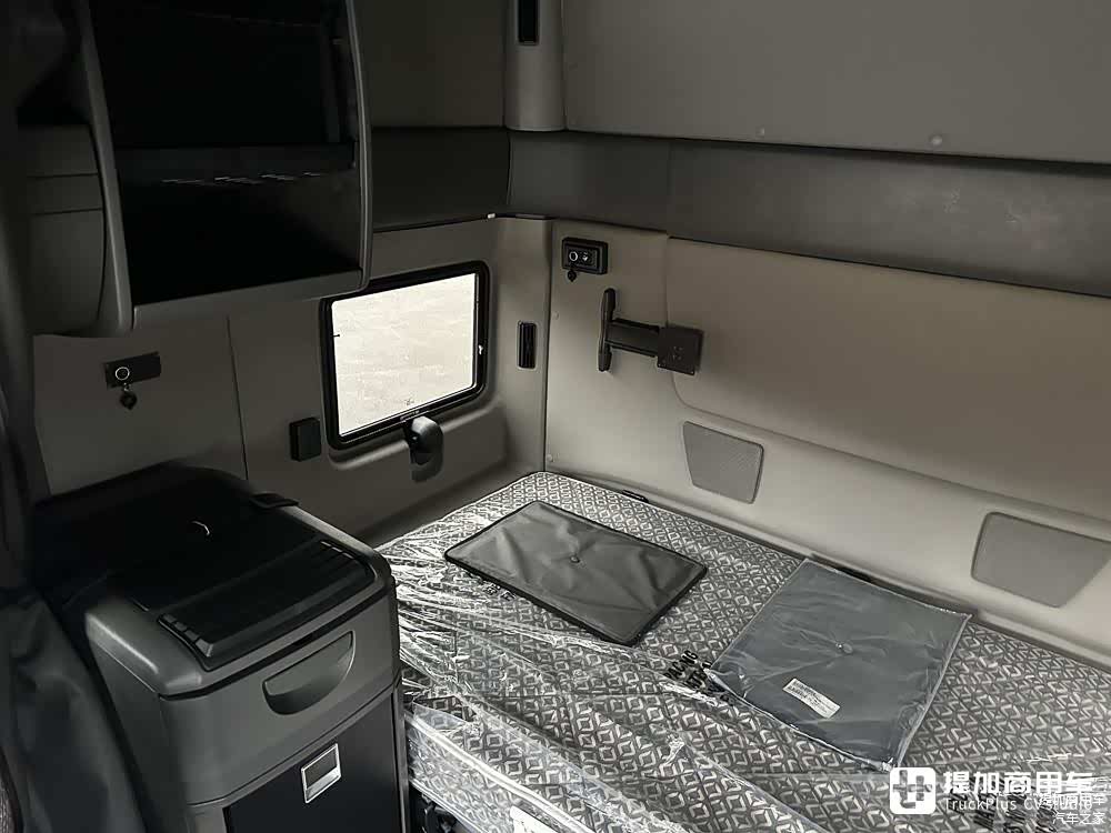 卧铺宽度达到了一米有余,超厚的床垫和超宽的尺寸能带来舒服的睡眠体验。左右侧窗增强了采光、降低压抑感,并且还可打开用于通风。驾驶室后壁上安装了电视旋转支架,不过还未安装电视,可与后期加装。