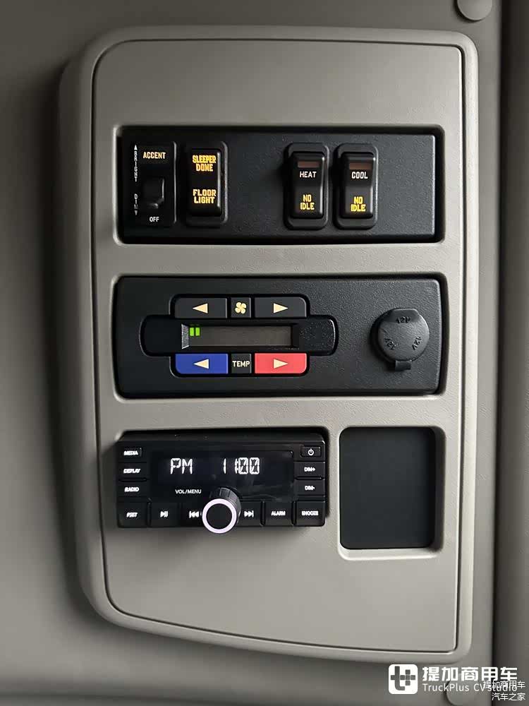 与大部分美式卡车一样,在卧铺和驾驶座椅之间是车辆的功能区。右侧功能区被设计成了储物柜,并且带有桌板,用于就餐等操作。左侧功能区一样是储物柜,可以看出这是一台低配车型。根据需要,车辆内饰可选装冰箱、微波炉等配置,生活气息更加浓厚。