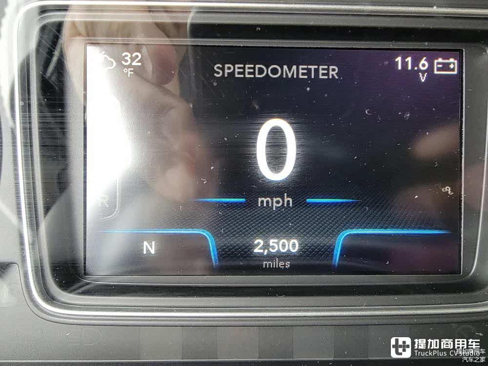 接下来,就让我们进入驾驶室来看一下。万国LT的方向盘设计很有意思,它的多功能方向盘设计在握持处内部,并且按键尺寸较大,便于控制。不过,多功能按键并不与方向盘盘面相融合,看起来也是很有意思的。车辆并没有液晶仪表盘的配置,依旧采用了机械+液晶的混合仪表盘。