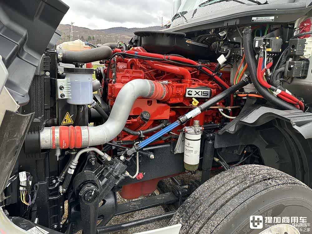 发动机方面,这台万国LT采用了康明斯X15发动机,这台发动机采用直列六缸布局,能够输出500匹马力和2508牛米扭矩,单从直面数据上来看其实并不算太出色。这台发动机采用了VGT变截面涡轮技术,XPI高压共轨燃油喷射系统等,油耗表现不错,并且排放标准可以满足最新的EPA限制。