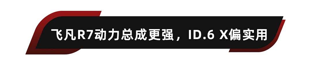在开车君看来,两款车型的特性非常明显。飞凡R7符合大部分的家庭用户,以及喜欢尝鲜的年轻用户的需求,加速能力强、纯电续航够长、产品设计够个性,而且还支持换电功能,而大众ID.6 X提供七座、后备厢空间大,更符合经常多人出行的消费者。