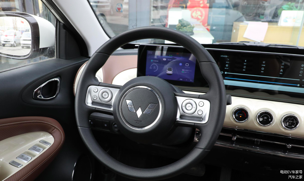 方向盘下方是全液晶仪表盘+中控的双联屏设计,尺寸分别为7寸和10.25英寸。中控搭载的是五菱自研的Ling OS灵犀系统,配置远程启动、无钥匙进入、自动泊车、TCS牵引力控制和ESC车身稳定控制等功能。只不过在目前来看流畅度还有不够的待提升,不过对于这样一台小车来说,有如此表现已经足够。