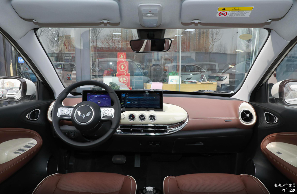 进入到车内可以看到全车内饰采用的是复古的设计,车内整体采用多色搭配,虽然采用了多色的搭配,但是却不会显得杂乱,座椅则是采用的是双色拼接的设计,不会显得车内的颜色太过于沉闷。