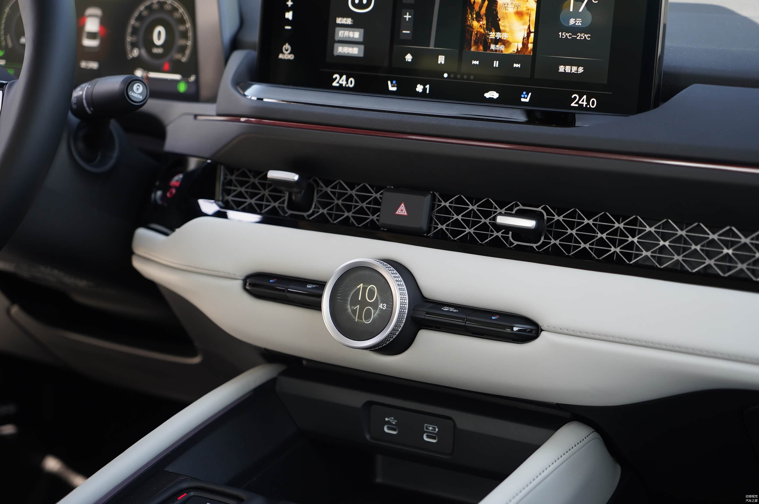 这个环境座舱控制旋钮是全新雅阁国产后的一个亮点,通过旋转+按压可以对氛围灯、空调模式和时钟等功能进行切换,并提供了自定义选项,说白了就相当于快捷键。旋钮的质感不错,中央也有小屏幕显示信息,但旋钮的位置放在中控台的中央位置会有些违和感。