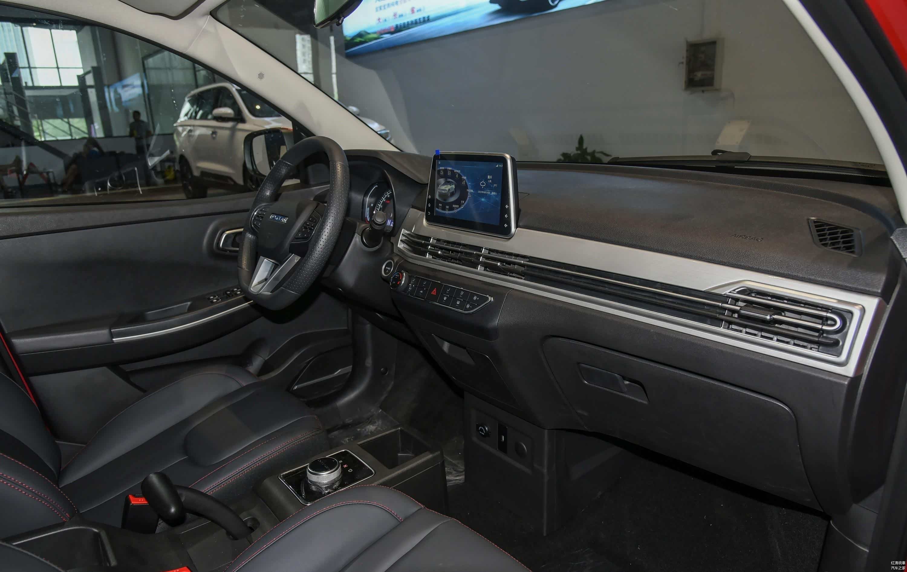内饰方面,中控台布局简简单单,但是相对外观来说就有些普通了,欠缺些年轻人喜欢的时尚元素,并且由于成本的控制,车厢内可以找到较多的硬质塑料,采用了电子式旋钮换挡机构,而手刹的造型真的是有些奇葩,呵呵。