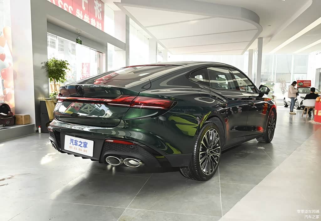 车尾处,名爵MG7采用贯穿式尾灯组设计,并且掀背式尾门造型也保证了一定的便利性和实用性,同时加上小鸭尾和夸张且尺寸硕大的尾部扩散器以及双边四出排气造型,运动感呼之欲出。