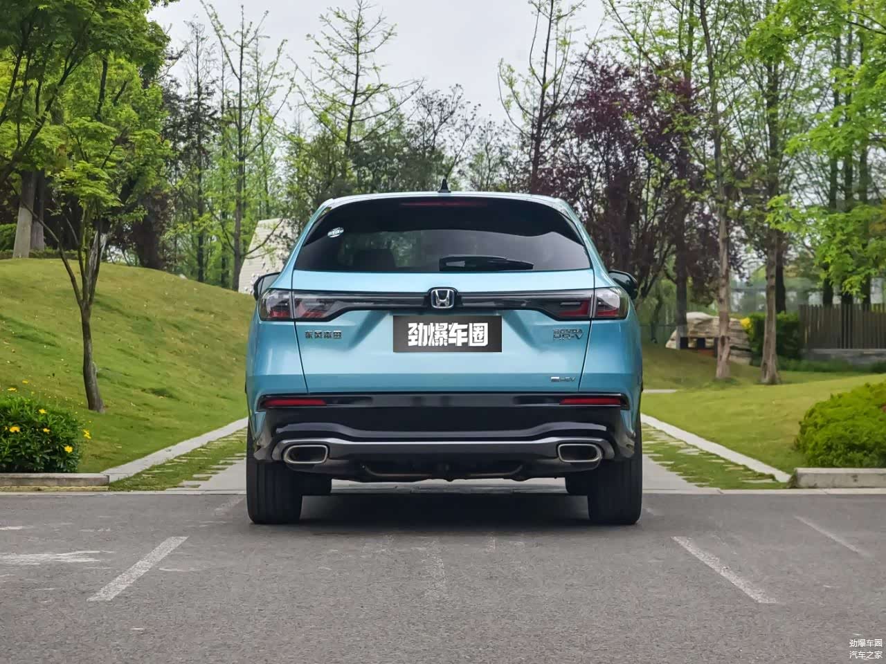 极氪X尾部相对于前脸及侧面来说显得没有那么激进,这难道与其大哥极氪001被诟病尾灯设计过于繁琐有关?HR-V e:HEV的尾部也并不惊艳,贯穿式尾灯,双出排气管,该有的设计都有,但很难说得上出彩。