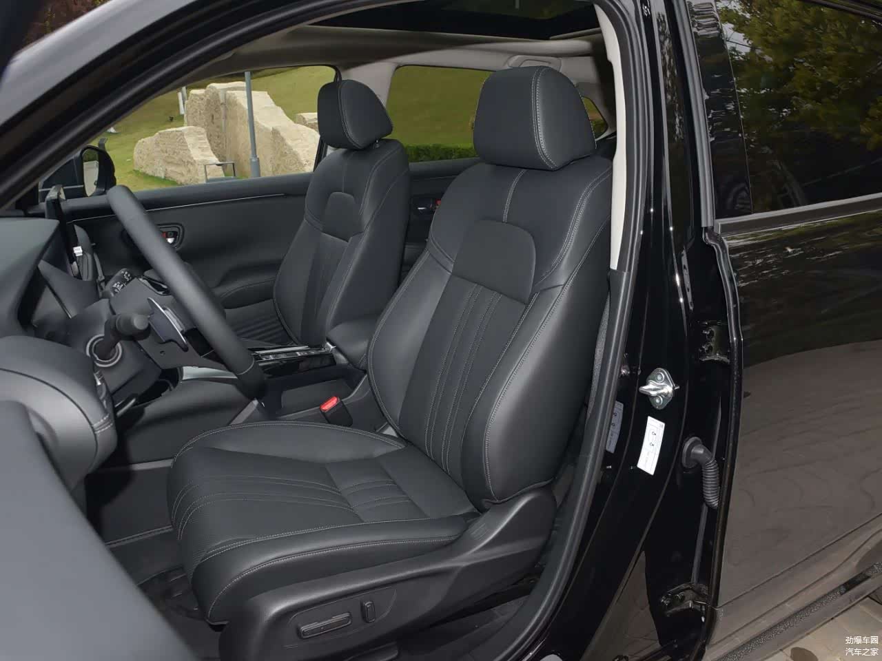 HR-V e:HEV采用2+3的传统座椅布局,虽然黑色的设计使得HR-V e:HEV的座椅“其貌不扬”,但采用真皮包裹值得点赞,值的一提的是,HR-V e:HEV以及极氪X都支持前排座椅的通风及加热功能。