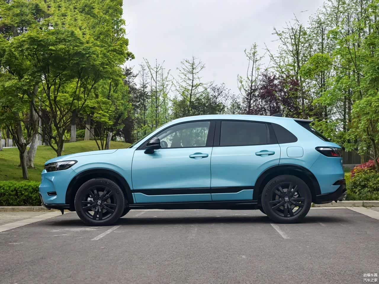 HR-V e:HEV车身长宽高尺寸为4569/1840/1621mm,轴距为2655mm,尺寸与极氪X相比稍占优势,但整体侧面设计相对保守,这从18寸的轮毂配置上就可见一斑。