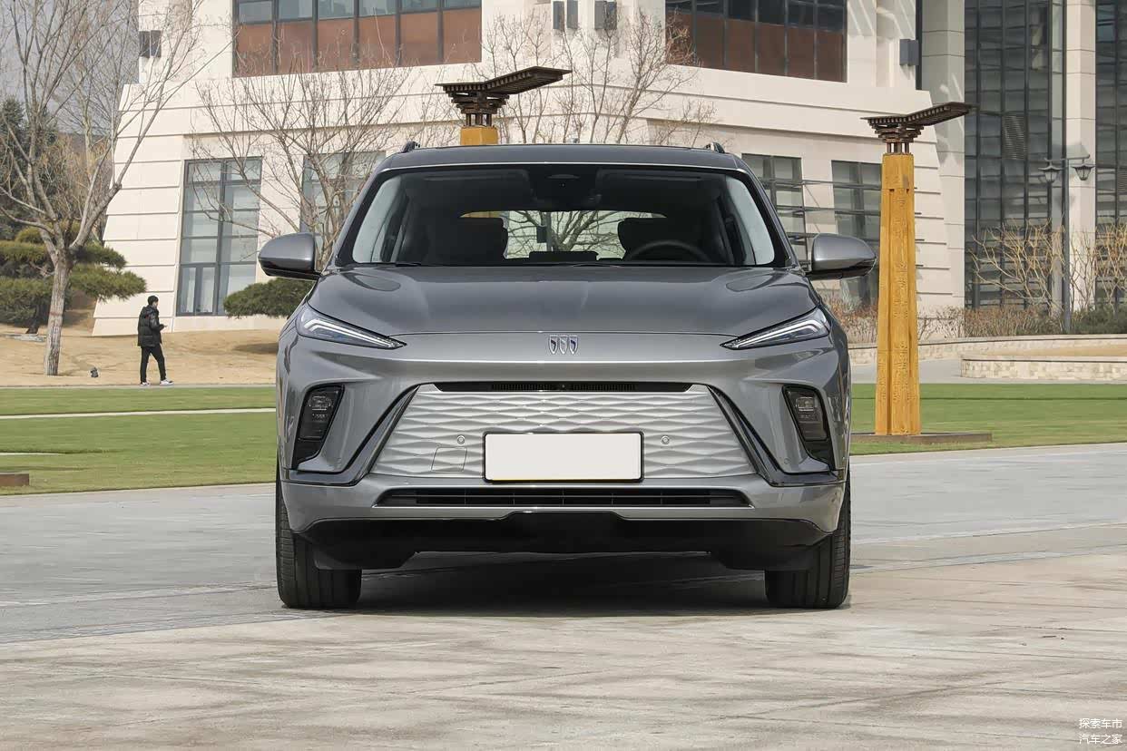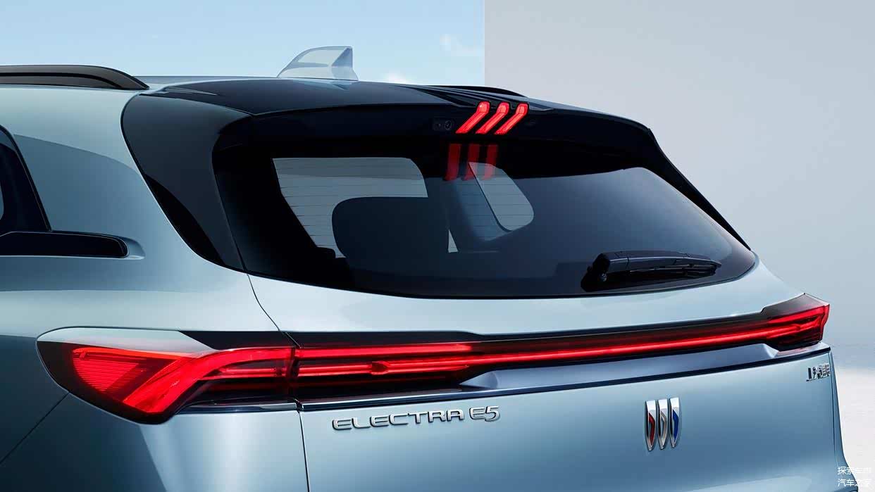 外观设计上,别克E5沿袭了Electra-X概念SUV的设计元素,拥有不少电动化的设计精髓。比如全封闭的中网配上分体式的LED大灯,全新的别克“三色盾”车标和波纹中网比较夺目。侧面部分,超长的轴距带来了更好的车身姿态,隐藏式门把手和饱满的腰线让车身更加干净。贯穿式的LED尾灯灯带在两侧增加了几段灯带提升辨识度,尤其是车尾顶部的三道杠式LED灯与车头三色盾车标呼应,整个车身外观不算特别惊艳,但整体给人的感觉还是比较舒服,很容易接受。