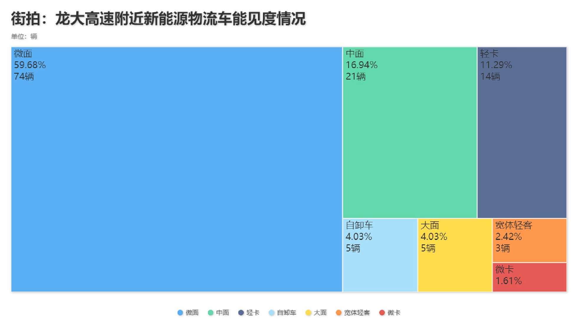 电车资源在龙大高速S31入口的周边多个地点进行定点抓拍,并以拍到的新能源物流车数据为参考标本,进行简单的数据统计。